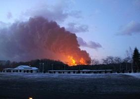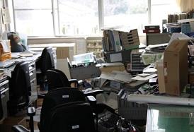 We are going to tell you about the situation of Tagajo High School soon after the disaster. When the earthquake happened, most of students were at the school. They took refuge in the schoolyard under teachers’ guidance while the shaking didn’t calm down. Since the power was out, the trains were not running. So, about 120 students stayed at the school that night. They also couldn’t watch the news, so no one knew that the tsunami had come close. The staff room was very messy immediately after the earthquake like the picture. The photo below is a photo of the petroleum refinery that exploded, causing a 100-meter pillar of fire that night. It was only a few kilometers from school. It scared the students who spent the night at the school.