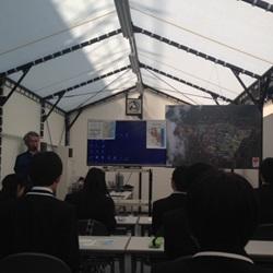 まず学校の概要について説明して頂きました。「変革者たれ」という建学の精神のもと、「自立」「協働」「創造」を校訓とする開校1年目の新しい学校です。生徒は主体性を強く持ち活動している様子です。