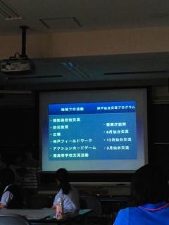 神戸大学附属中等教育学校からは「防災教育に取り組む上での課題点」や、仙台交流、復興庁訪問などの活動について説明がありました。