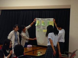 今回の講習は,3月のメモリアル行事で行うワークショップの模擬演習という位置付けで,生徒がファシリテーターを務めて行いました。生徒たちが事前に用意した進行要領でワークショップを行ってみると,ゴールの明確化や使命を与えることなど多くの課題が見つかり,和田先生や大学生から多くのご助言やご指摘を頂きました。