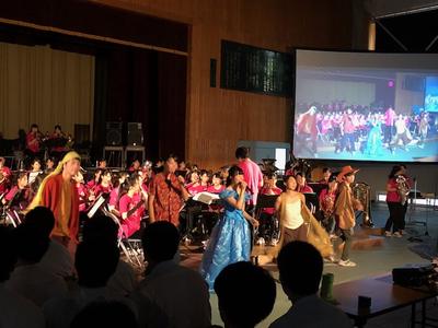 生徒のバンド演奏で歌う渡邊先生と谷島先生。