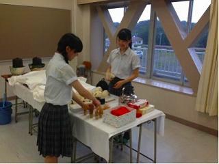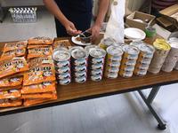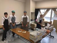 家庭部の準備の様子              防災委員会が紹介・配付した非常食