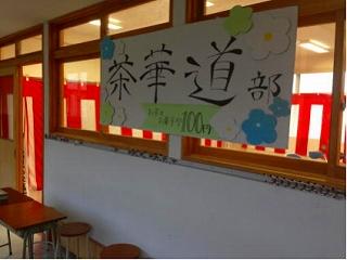 また「紅一点」の茶華道部の発表は多くの人が見学していました。