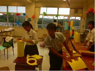 午後に入ると生徒は模擬店や展示の準備に入りました。あすは防災教育に関する展示、献血セミナー、自衛隊による炊き出し訓練(豚汁無料)、模擬店、PTAの展示、非常食の試食会などたくさんの内容が予定されています。多くの皆様方のご来場をお待ちしております。