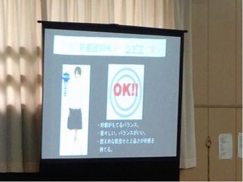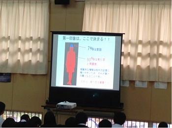 「人の第一印象は見た目と雰囲気できまる」「好印象を与えるスカート丈は?」「ワイシャツの起源」などなど興味深い話題を数多く提供して頂き、生徒はメモを取りながら真剣なまなざしでお話を伺っていました。
