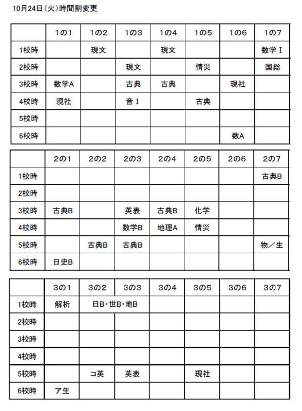 10/24 時間割変更について
