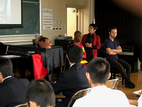 10月2日(月)に、モザンビークのミュージシャンであるナジャ・ルイス・ヴィレリオさんをお迎えして、特別授業を行いました。「モザンビークのいのちをつなぐ会」の代表である榎本恵さんと、七ヶ浜町観光協会副会長の久保田靖朗さんにもご来校いただいて充実した内容となりました。