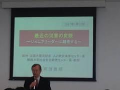 ここで人と防災未来センター長 河田惠昭氏より特別講義「地球温暖化と災害の被害の変化」をお話して頂きました。