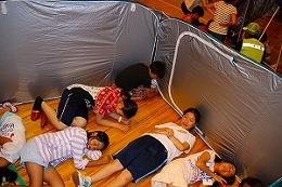 私は,この防災キャンプ1泊2日の間,避難所にいるような体験をしました。それはとても辛く,大変なことでした。スプーンやコップはもちろんお皿にラップを敷いて何度も使ったり,残った食べ物をラップに包んだりしたことから,食べ物を大切にするということを学びました。また,テントの中に人がぎっしりと並ぶ状態で寝たことから,避難所生活は,寝返りもできなくて,体にも悪いし,精神的にも辛いものなのだなと考えました。
