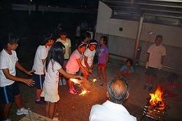 【公民館のかまどベンチを利用してのアルミ缶炊飯】