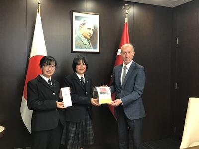 3月30日(木),災害科学科1年(新年度2年)の遠藤彩吏,畑山絢音の2名が在日トルコ共和国大使館を訪れ,外交官の方に自分たちで集めた募金を手渡しました。