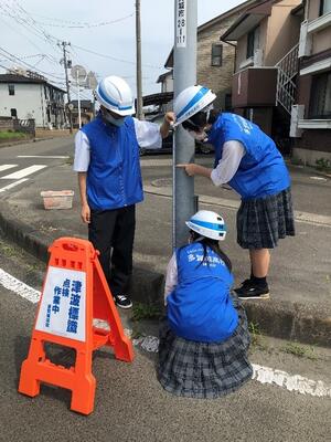 8月5日(水)に,多賀城市八幡上二地区において,津波波高標識設置活動を行いました。