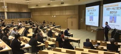 その後の教員研修会では,山口氏より,「研究テーマをどう見つけ探究するか」~アジェンダセッティングと事実を繋ぐということ~ という演題の講演をいただきました。新学習指導要領における総合的な探究の時間の目的や指導のポイント,他校の優れた研究事例の紹介,生徒をAO入試に対応させる為の指導の在り方等について多くのヒントを得ることができ,SSH事業校として,課題研究の指導に対する本校教員の大きな指導力向上に繋げることができました。御教示いただいたことを,今後の教育活動に活かしていきたいと考えております。