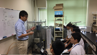 1日目の研修後は,高木浩一教授,三浦健司准教授から,本校単独で,太陽光パネルの起電力測定の実験を指導していただき,得られたデータの処理方法を通して数学の重要性を学びました。また,本校OBの総合科学大学院理工学専攻の山田さん,さらには久保さんから大学での生活や高校時代のお話をしていただくなど貴重な体験ができました。