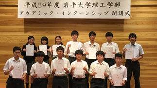 岩手大学理工学部アカデミックインターンシップは,進路指導の一環で,本校生徒を大学の研究室で受け入れていただき,生徒自らが主体的に大学での日々の学びや研究活動に触れる体験をする機会として平成27年度から実施しているものです。昨年度からは,岩手県内を中心とする,6つの高校と合同で実施しています。