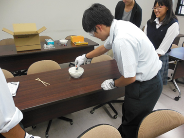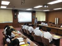 両日とも、最初に理工学部の高木教授から、アカデミックインターンシップの説明と諸注意を頂きました。その後、化学コース、生命コース、マテリアルコース、知能・メディア情報コース、機械科学コース、社会基盤・環境コースの6つに分かれ、それぞれの会場(研究室・実習室など)に移動しました。