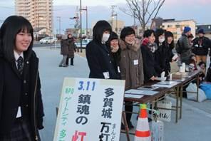 東日本大震災から6年目を迎えた3月11日,NPOゲートシティ多賀城が企画する多賀城・万灯会に本校から運営ボランティアとして33名の生徒が参加しました。