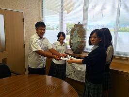 9月6日の地震直後から本校では募金活動を行い,そこで集まった義援金を両校に直接手渡してきました。