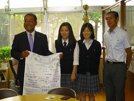 朝倉光陽高校さんへ激励旗と義援金の贈呈