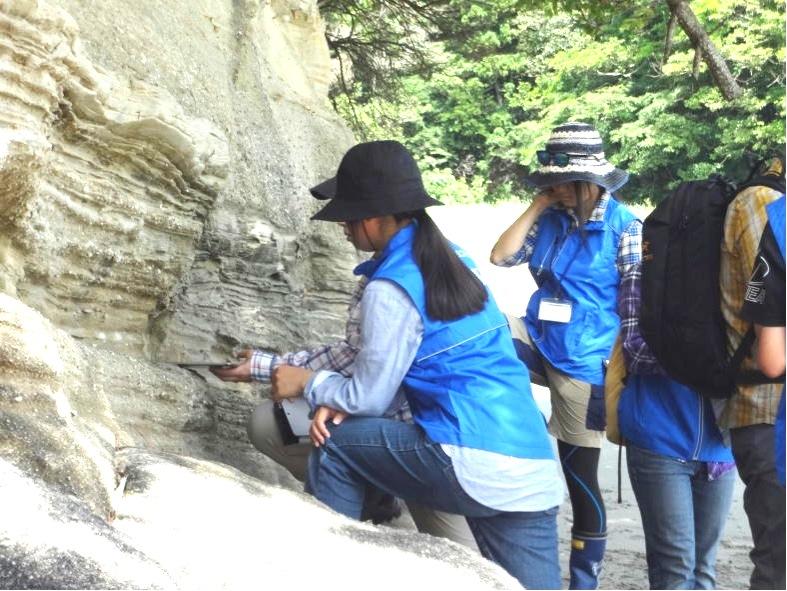 講師の先生方は,大学の講義レベルの内容を高校生にも理解できるように噛み砕いてご指導してくださいました。 参加した生徒たちも先生方のお話に真剣に耳を傾け,自分たちの住んでいる宮城県,そして地球がどのような地殻変動を経て現在に至るのかを学ぶことができました。 「実際に歩いて露頭を観察することで,地層の成り立ちや危険箇所を知ることができ,防災にも役立つ。」というお話もいただきました。