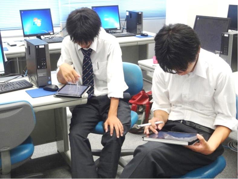この事業はパナソニック教育財団の助成対象であり,宮城教育大学のCOC事業の協力を得て行われました。 実習ではノーペーパーでi-Padに保存されたいる地図に直接記録を書き込む,クリノメーターや方位磁石としての測定器具として使う, 写真や動画を撮影する記録媒体として用い,データを共有するなどの取り組みをおこないました。 これまでに無い,校内外での多面的なタブレットの活用としても意義深い実習となりました。