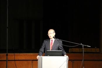 本校の小泉博校長は、「宮城県多賀城高校の防災・減災学習~被災地から発信する防災学習モデル~」というテーマで、本校の防災・減災学習の基本的な考え方に基づいた取り組みについて話されました。特に「誰にでも 未来を創る 能力がある」という語り出しには会場の多くの参加者が共感を寄せ、本校が行っている防災から海洋教育にわたる幅広い教育活動に熱心に耳を傾けていただきました。