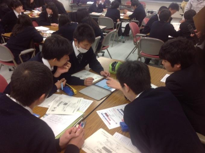実習のまとめ作業2日目は,多賀城高校でまとめの作業を行いました。1日目に測定した走向傾斜を地図上にプロットする作業や牡鹿半島の地質構造の確認をしました。 また,地層観察からわかった地球の地殻変動や海水準変動をまとめる作業をしました。