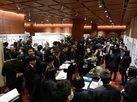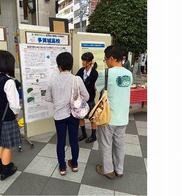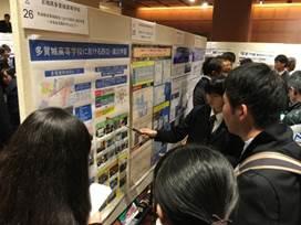 シンポジウムの後,ポスター・セッションが行われ,ポスタータイトル『多賀城高校における防災・減災学習 -生徒会活動を通して- 』(本校のESDについて。2年生の小野寺杏さん,佐藤千咲さん),『土壌中のイオン濃度の測定と環境変化の一考察』(災害科学科の浦戸実習とその後の調査について。阿部大和君,鈴木勇汰郎君,瀬戸朝陽君)の2つを発表しました。多くの方が発表を聞きに来てくれ,多賀城高校の活動に感心していました。また,他の発表を聞くことで,参加した5名も大いに刺激を受けてきました。