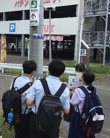 本校生徒が説明を聞いている様子です。