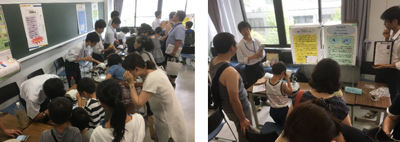 当日は大勢の家族連れで賑わい,迎え入れた私たち科学部員も大いに楽しむことができました。この科学イベントを通じて,参加した子供たちにとって思いで深い一日になってくれたものと思います。~知的好奇心がもたらす心豊かな社会の創造にむけて~来年も多くの子供たちを科学の世界に導きたいと思います。