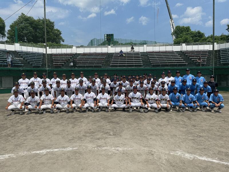 令和4年8月11日(木),多賀城・塩釜・松島地区の中学3年生を対象に,松島球場で本交流事業が開催されました。高校で野球部に入部する生徒が年々少なくなってきていることから,中学生が硬式野球に親しむことで,高校野球の魅力を感じてもらうことを目的に開催されました。当日は塩釜高校・松島高校・多賀城高校の野球部員が補助員として参加しました。中学生は3年生7名と少ない参加人数ではありましたが,高校生の指導の下,真剣に硬式野球に取り組んでいました。