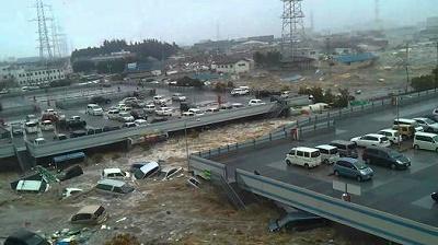ジャスコ多賀城店では、実際の津波襲来の映像を見ながら「都市型津波」についての説明がなされました。