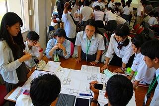 本校を会場としたワークショップでは、四日市大学の学生がファシリテイター役となり「避難所運営ゲームHUG」を行い、実際の現場を想像しながら必死に知恵を出し合いました。参加した三重県の高校生からは、「実際に被災地にきてみて、勉強になったことがたくさんありました。ここで学んだことをこれから活かしていきます。」と感想を述べてくれました。
