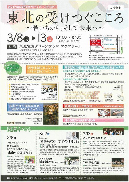 3月8日から13日まで東北電力グリーンプラザ・アクアホールで行われた東北電力が主催の『東北の受けつぐこころ ~わかいちから。そして未来へ~』で本校の活動の様子がパネルで紹介されました。