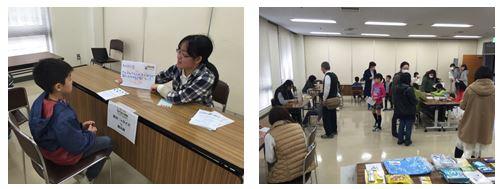 当日は定員を満たす盛会で、午前の部、午後の部合わせて21家族、58名の参加がありました。また、同時に、小学生対象の「防災○×クイズ」や各企業から提供を受けた「防災グッズ展示体験コーナー」も開設し、たくさんの方が訪れました。