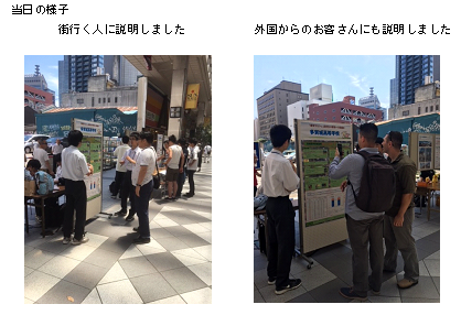 一般の人々に向けて発表するということでいつも以上に緊張しましたが,発表の回を重ねるごとに上手に伝えることができ,貴重な体験となりました。また,他校の発表を見ることで,その充実した環境活動と問題へのアプローチの仕方に感心させられました。