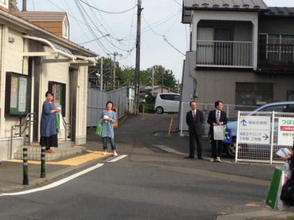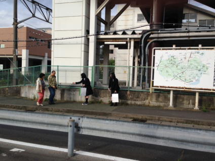鉄道乗車マナー向上を呼びかけるティッシュを配布しながら、駅利用者の皆様方と挨拶を交わしました。