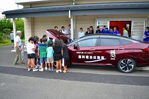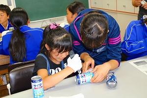 小学生を対象にしたこのキャンプには,11名の小学生が参加しました。本校生徒は,多賀城二中の生徒と一緒に小学生とグループをつくり,共に活動したり体験のサポートをしたりしました。参加者は,「アルミ缶炊飯」や「防災○×クイズ」「ハザードマップから考えよう」「防災倉庫には何が入っているのか」「燃料電池自動車を知ろう」などの体験を通して,防災意識を高めていました。