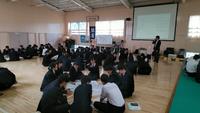 講師に八千代エンジニヤリング株式会社の寺脇氏をお招きし,2学年全員に授業を行っていただきました。昨年の西日本豪雨災害や多賀城市で発生した過去の災害やハザードマップ,洪水・土砂災害などについて学んだ後,グループごとにDIGに挑戦しました。設定や地図を踏まえながら,どのように避難をすれば良いかを考えることができました。