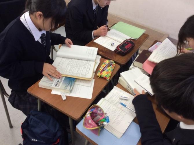 午後は5,6校時に講師の小林先生による特別授業が1年7組を対象に行われました。アクティブラーニング型で行われたため、授業当初には生徒は戸惑っていたようですが、小林先生の声がけによってどのように取り組むべきかをつかんでいきました。6校時は、前時の続きとなったため、スムーズに学習課題に取り組んでいました。授業後に生徒が記述したリフレクションカードには「普段では頭に残らない公式もグループで話していると自然と覚えられていて驚きました」「内容を理解しようと思う気持ちや、友達と相談しながら問題を解いてみたり、テストしたりして『考える力』が身につく授業でした」など、新しい授業スタイルに手応えを感じていたようでした。