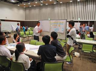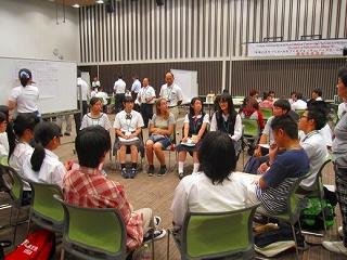 2日目と3日目の午前は、グループに分かれそれぞれ「地域の防災リーダーになろう」「地域と世界のかけ橋になろう」というテーマでワークショップが行われました。大学生ファシリテーターのもと、課題とその解決策について真剣な表情で、活発な話し合いが延々と続きました。時間を惜しんで取り組む姿が見られ、夕食後もさらに話し合いを重ねるグループもありました。