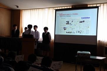 6月11日(日)に,本校2年生の防災委員14名が,塩釜一中さんの「防災活動」の講師を務めました。この日は,塩竃市総合防災訓練の日で,塩釜一中さんでは,市全体の避難訓練の後に学年毎に防災活動に取り組みました。 本校防災委員は,中学2年生122名と地域の方を対象に「多賀城高校における防災活動の発表」と「防災ワークショップ」を行いました。 「多賀城高校における防災活動の発表」では,「災害科学科の授業内容」や「まち歩きマップ」も紹介しました。塩釜一中の生徒さんは興味深く聞いてくださり,たくさんの質問を受けました。