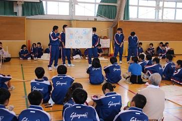 最初に行った「多賀城高校における防災活動の紹介」では,分かりやすく説明できていて,中学生もクイズに積極的に参加したり,質問してくれたりして,とても良い時間になったと思う。また,ワークショップでは,指示するのが少し難しかったが中学生が積極的に意見を言ってくれたり,指示したとおりに行動してくれたりしたので良かった。今回の活動を通して,中学生と防災についてよく考えることができた。これからもこのような活動をしてきたいと思った。