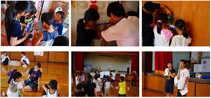 本校生が担当した時間では,「津波波高標示プレート設置」「防災○×クイズ」を行いました。「津波波高標示プレート」は本校生徒会が設置活動を行っているもので,公民館内に小学生と一緒に設置しました。また,「防災○×クイズ」では,防災に関するクイズを楽しみながら防災意識も高めることができました。