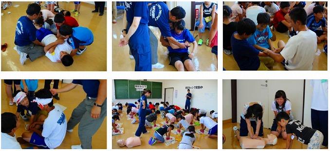 特に印象に残った体験は,消防署の方から教えていただいた搬送法です。3,4人の子供たちが体格の良いラグビー部の高校生を持ち上げて運ぶことができたのです。搬送法を知っていれば,小学生でも簡単かつ安全に大人を運ぶことができることに驚きました。
