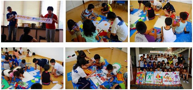 佐藤直樹さんとのワークショップでは,大代地区を守る「ボーサイヒーロー オーシローファイブ」を創作しました。この作品は,大代地区公民館入り口に飾られています。