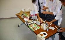 まず、熊本地震被災地の慰問交流の報告を参加した生徒が発表。発表会場の後方には、様々な非常食を並べ、実際に試食してもらいました。試食された方々からは、「思っていたよりもとてもおいしいし、食べやすくできている。」といった感想がきけました。