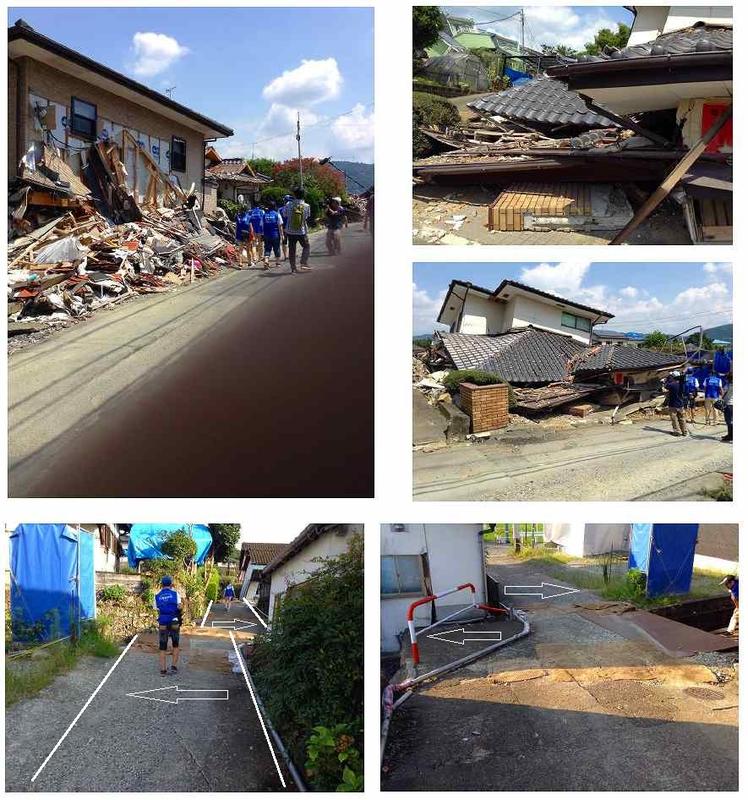 住宅の9割以上が被害を受けた益城町では,倒壊した住宅やブルーシートがかけられた屋根があちこちにありました。地表に現れた断層面や2m近く横にずれてしまった道路も見てきました。実際に被災地を歩いて・見て・被災者の話を聞いて,町全体が甚大な被害を受けたことを肌で感じることができました。