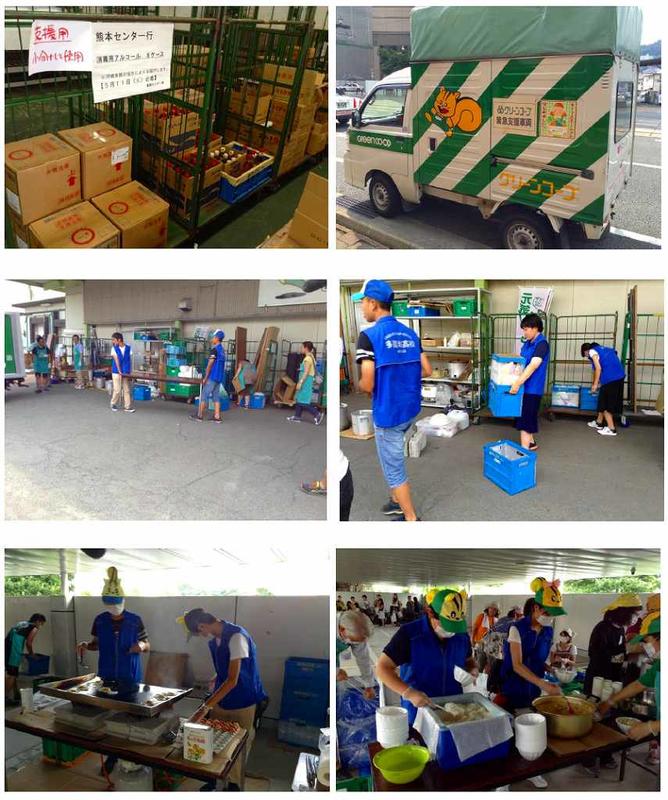 物資支給や炊き出しなどの被災者支援活動を行っているグリーンコープさんは,「被災した方々に元気になってほしい」「私たちが一生懸命に取り組む姿から感じてほしい」という思いで支援活動を続けているのだそうです。本校生徒も炊き出しの手伝いをさせていただき,被災者の方とも触れ合うことができました。