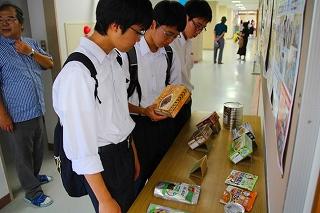 まず、熊本地震被災地の慰問交流の報告を参加した生徒が発表。発表会場の後方には、様々な非常食を並べ、実際に試食してもらいました。試食された方々からは、「思っていたよりもとてもおいしいし、食べやすくできている。」といった感想がきけました。